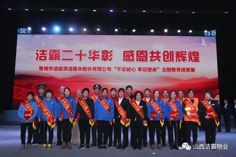 本次晚會以“潔霸二十華彰,感恩共創(chuàng)輝煌”為主題,此次慶典的核心思想是“感恩”,主要角色是潔霸的創(chuàng)業(yè)者。為此,公司對入職潔霸的創(chuàng)業(yè)功勛和一線員工進(jìn)行了表彰獎(jiǎng)勵(lì)。本次晚會共設(shè)8個(gè)獎(jiǎng)項(xiàng),包括“潔霸先鋒”“奉獻(xiàn)之星”“管理之星”“潔霸管家”“潔霸工匠”“清潔之星”“潔霸衛(wèi)士”“園藝之星”等。他們是:李山虎、張永智、史志霞、陳福林、王紅軍、余艷青、劉二丑、成艷粉、楊改梅、王書玲、張國榮、耿竹青、張粉霞、宋秋苗、陳先梅、張晉平、張偉山、趙瑞軍、王廣平、郭志云。晉城市原副市長成育廷、晉城市商務(wù)局原局長王新善、晉城市非公和社會組織工委書記郎軍芳、晉城市婦聯(lián)三級調(diào)研員李蓮菊、晉城市總工會商貿(mào)輕紡煙草服務(wù)業(yè)工會主席張玉濤、晉城市城區(qū)財(cái)政局局長翟明太等領(lǐng)導(dǎo)為他們頒獎(jiǎng)。
